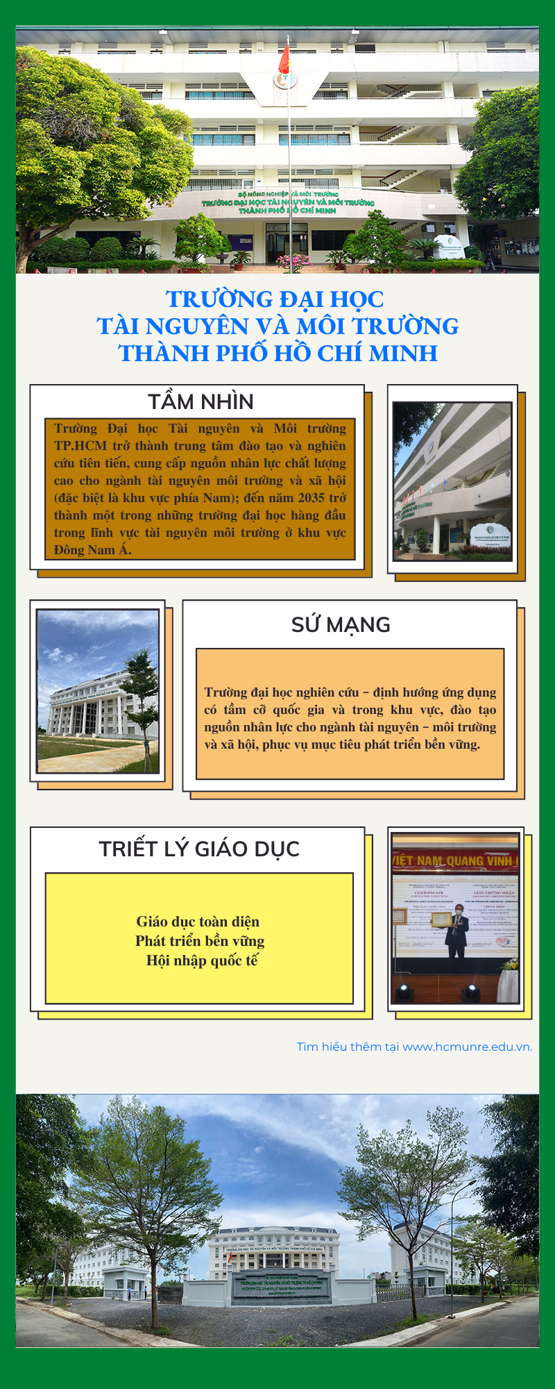 Trường Đại học Tài nguyên và Môi trường TP. Hồ Chí Minh (HCMUNRE) là trường đại học công lập duy nhất phía Nam trực thuộc Bộ Nông nghiệp và Môi trường. Trải qua gần 50 năm hình thành và phát triển, Trường đã từng bước khẳng định là một trong những trường đại học đầu ngành của cả nước đào tạo nguồn nhân lực có trình độ cao trong lĩnh vực công nghệ, quản lý tài nguyên, đảm bảo môi trường sạch cho sự phát triển bền vững cùng thế giới ứng phó với các vấn đề biến đổi khí hậu trên toàn cầu.